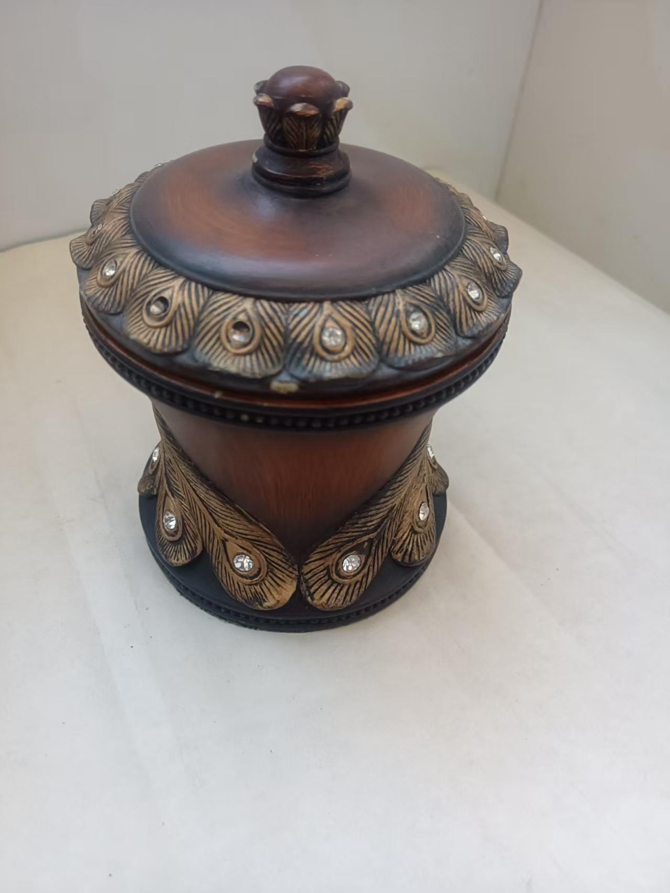 清代玉镶嵌钻石凤尾首饰盒