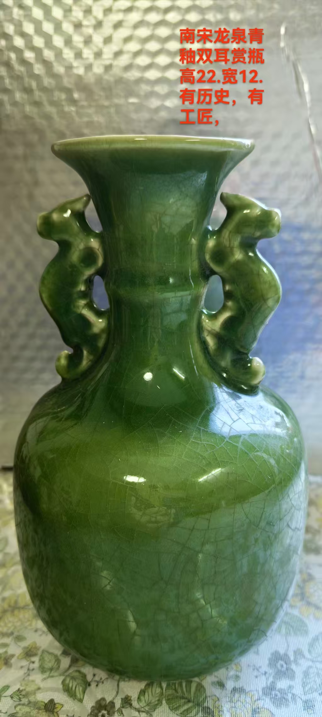 南宋哥窑双耳青釉赏瓶