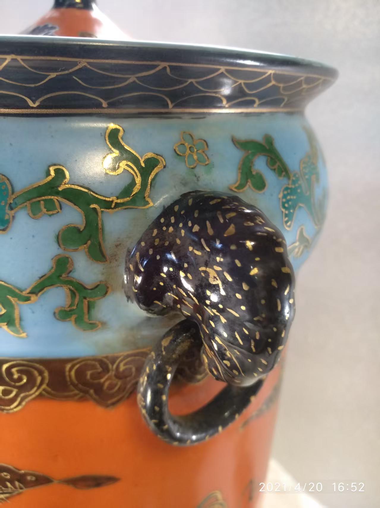清代乾隆官窑鎏金蓋罐