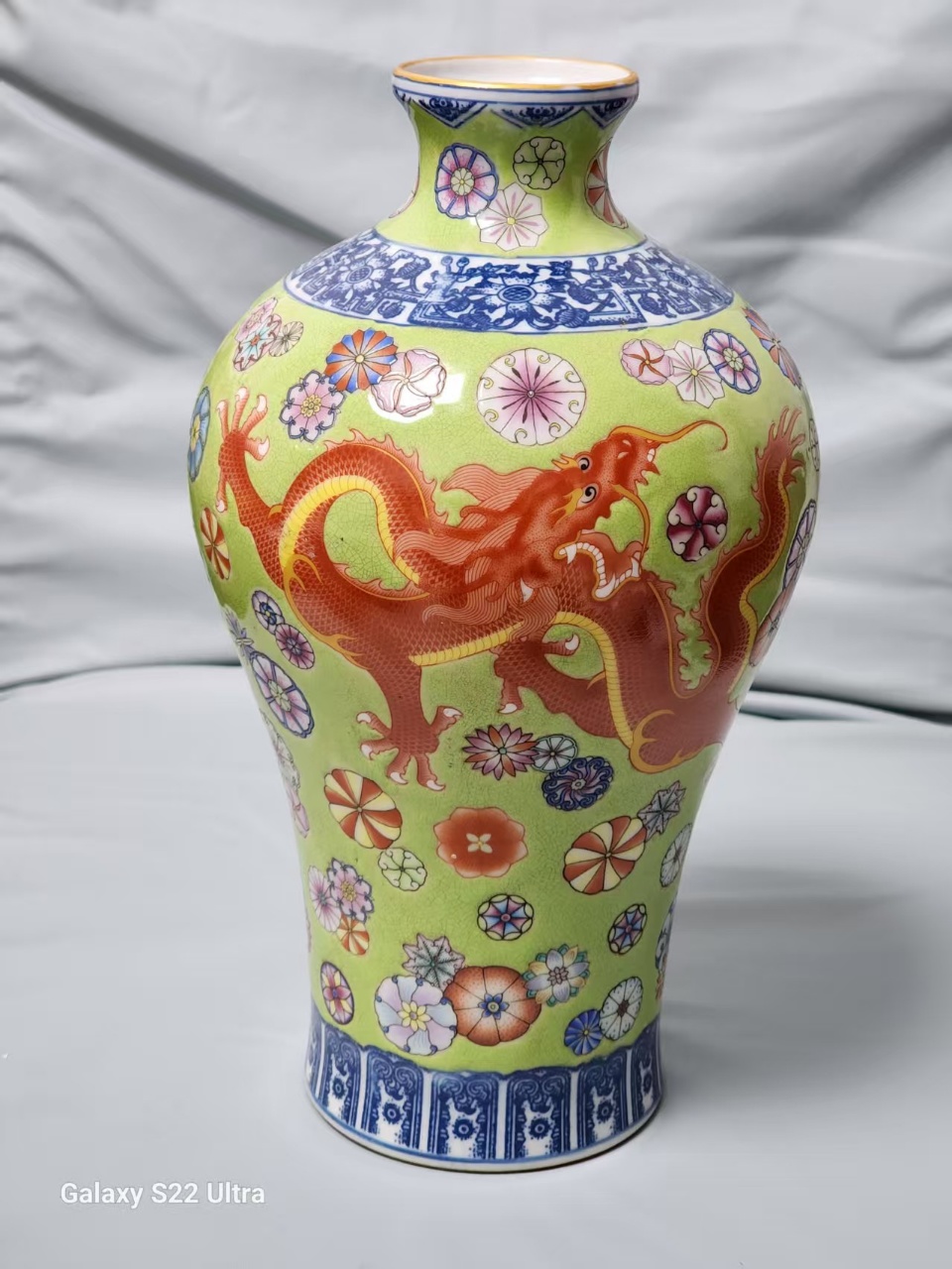 乾隆底款苹果绿釉粉彩描金龙梅瓶