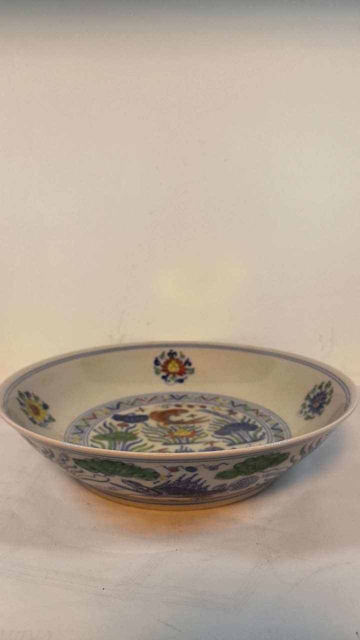 大明成化年制斗彩鱼藻纹盘