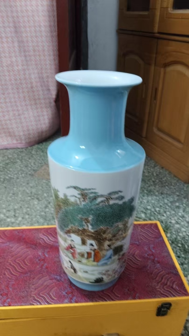 王锡良《粉彩人物诗文瓶》
