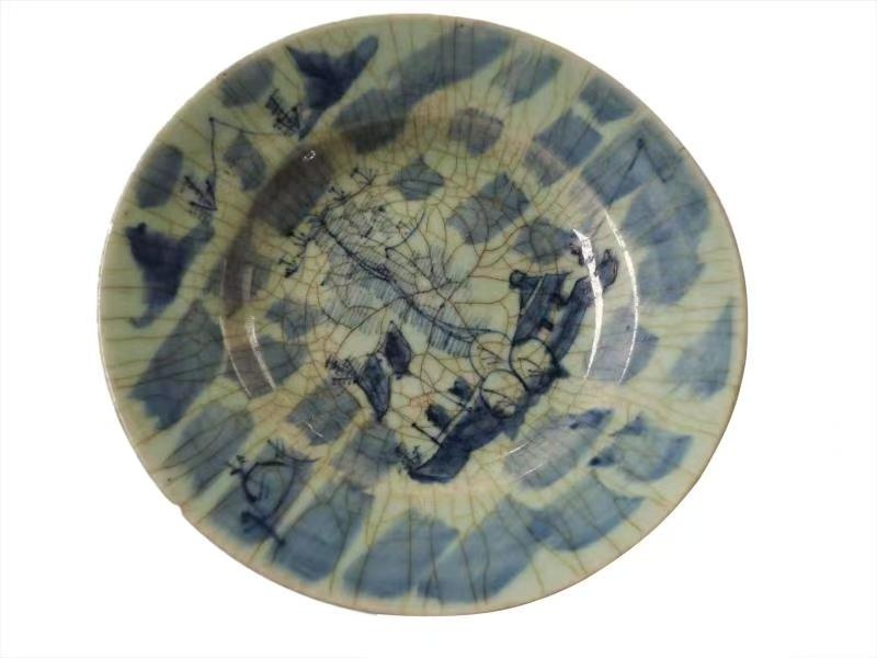 清代哥釉青花人物纹盘