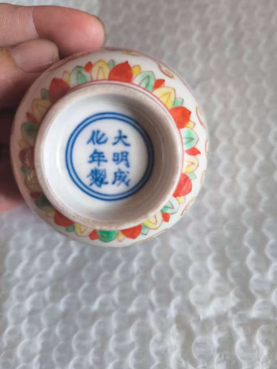 明成化款五彩葡萄花蝶纹压手杯