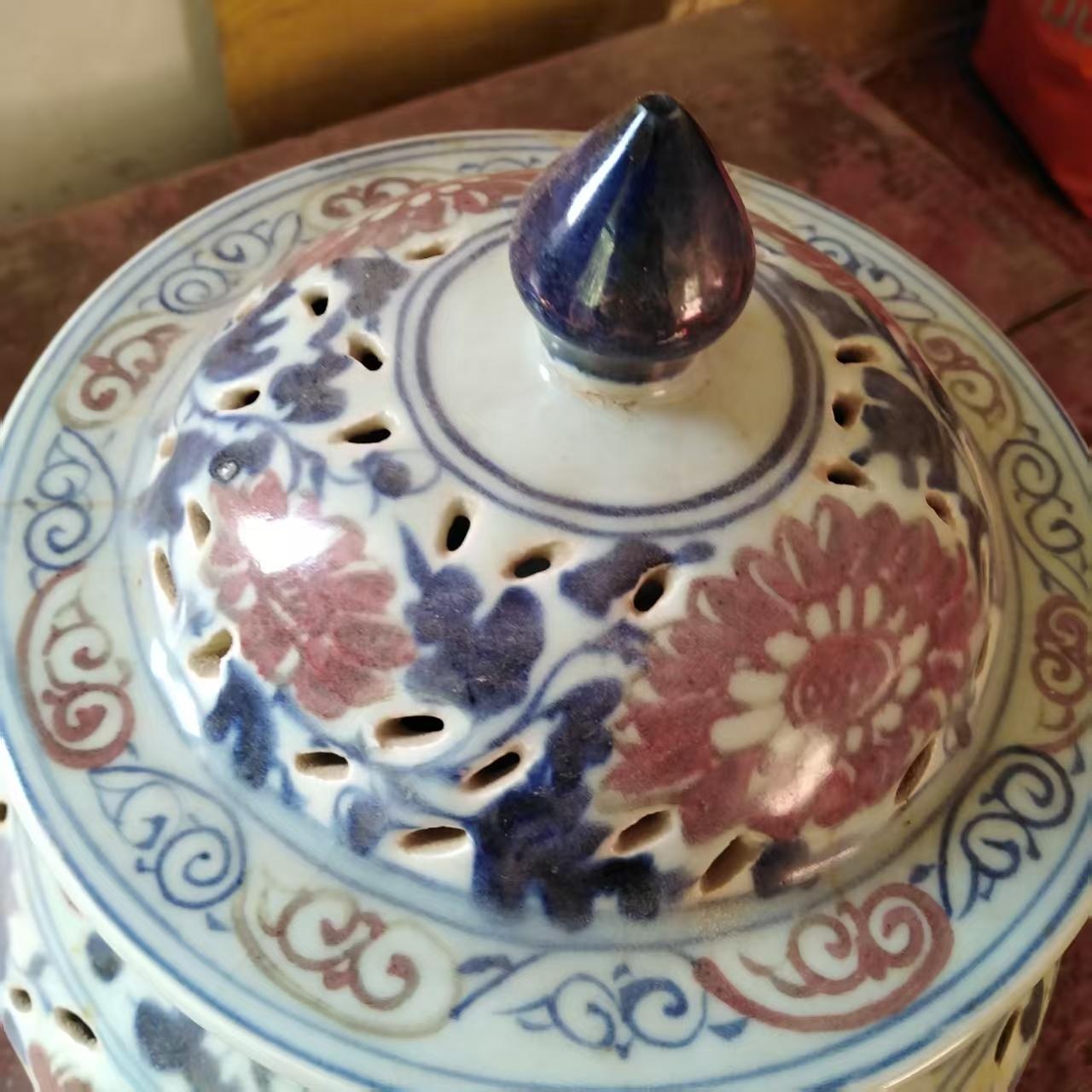 元青花镂空釉里红盖罐