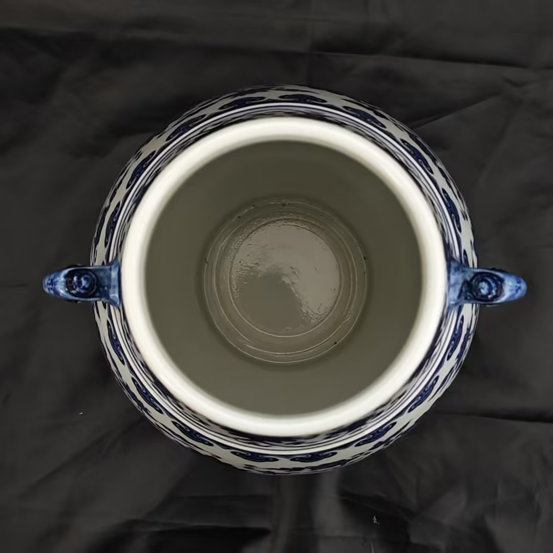 清乾隆青花牡丹连枝纹象耳樽